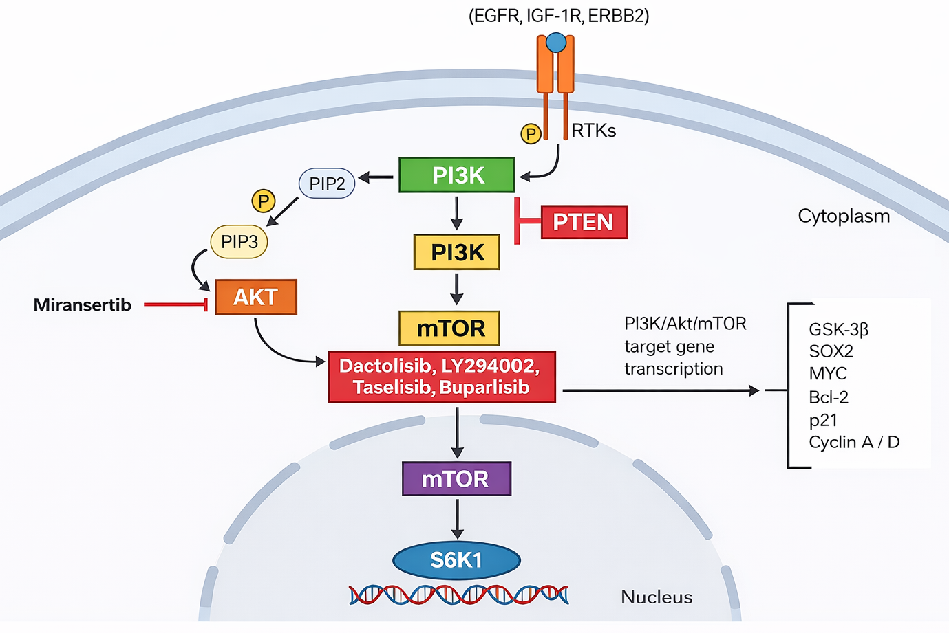 Similarly, this blockade of AKT will favor apoptosis and prevent positive feedback of PI3K.