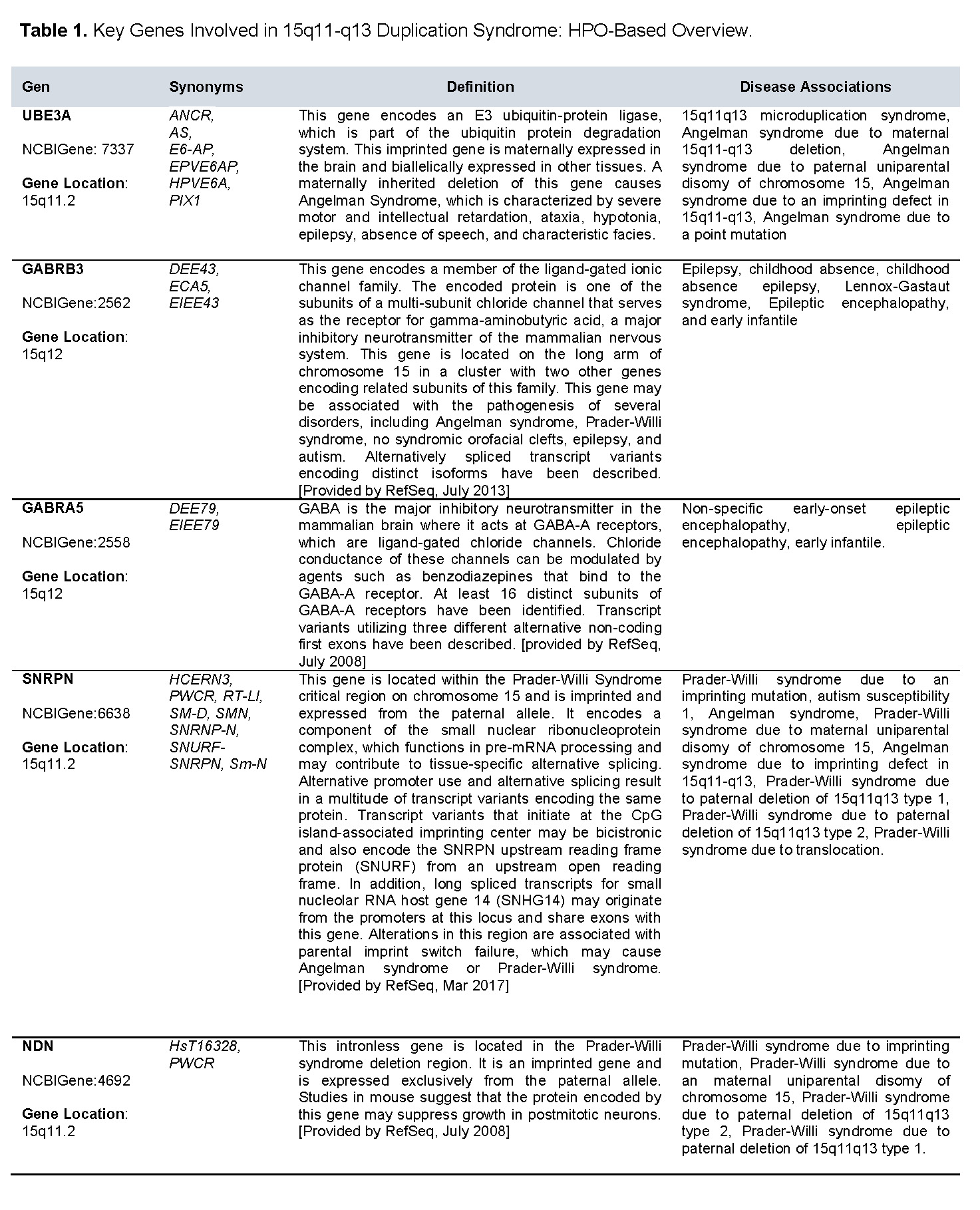 [1] Bisba M, Malamaki C, Constantoulakis P, Vittas S. Chromosome 15q11-q13 Duplication Syndrome: A Review of the Literature and 14 New Cases. Genes (Basel). 2024 Oct 1;15(10).